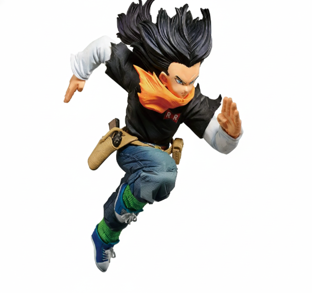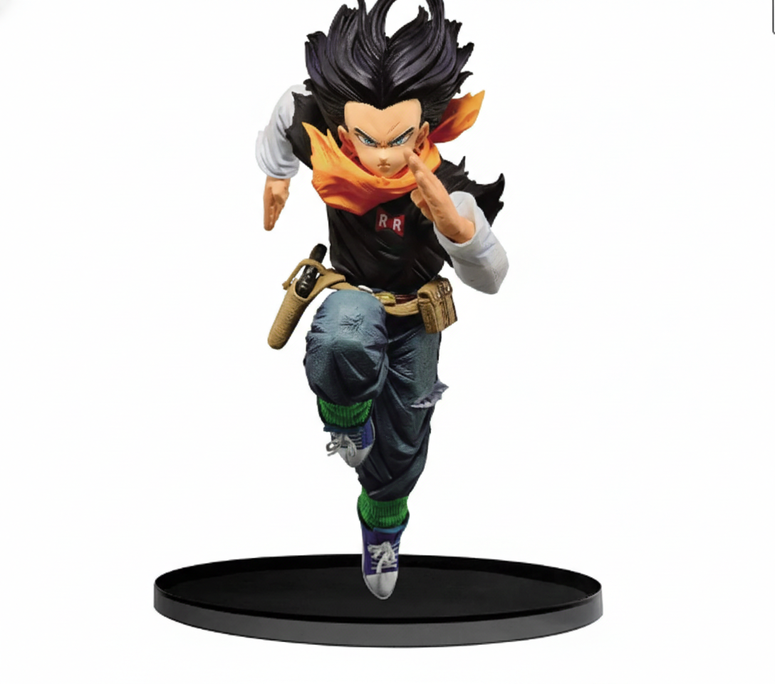 Androide 17 se lanza a la batalla con otra figura excepcional que se une a la colección Banpresto World Figure Colosseum de Dragon Ball Z. Con su cabello negro ondeando tras él y una expresión aterradoramente concentrada, esta figura de 17 cm captura a la perfección su valentía. Además, cuenta con un nivel de detalle exquisito, incluyendo la textura de su ropa y los colores cuidadosamente recreados.
