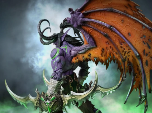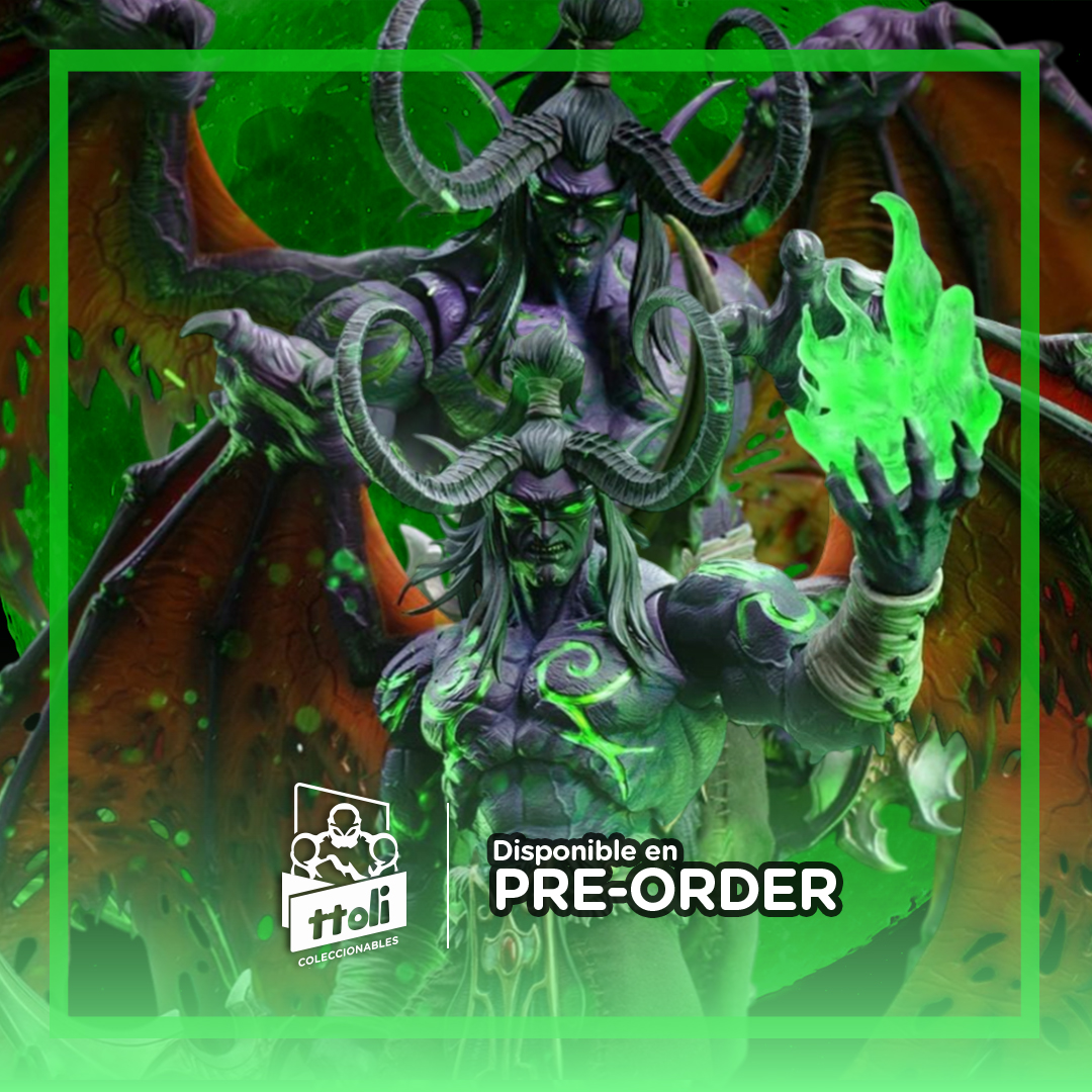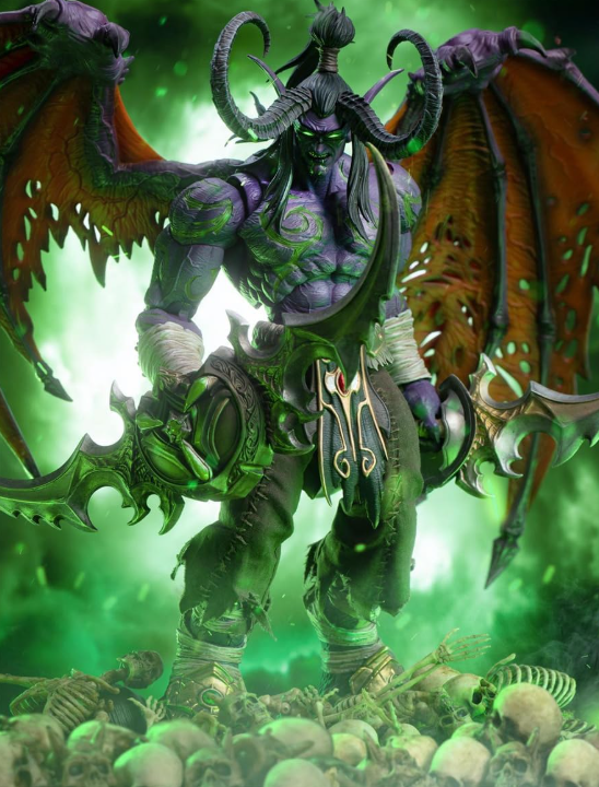 • Escala: 1/12. Altura: 24 cm. Material: ABS, PVC. Incluye: 1 cabeza de luz, 1 espada doble de Azzinoth, 1 efecto especial de llama vil, 1 pantalón de tela, 2 pares de manos, 1 calavera de Gul’dan y un par de alas móviles.
