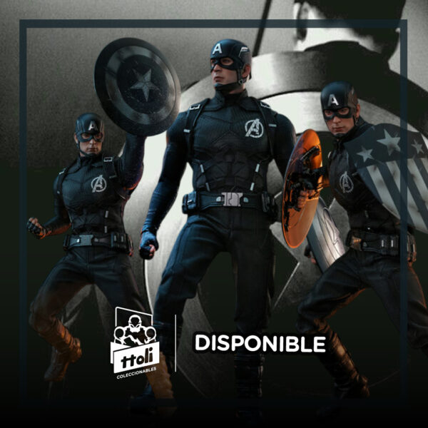 - Un (1) traje del Capitán América de color negro, recién confeccionado, con patrón de escamas y emblema plateado de los Vengadores