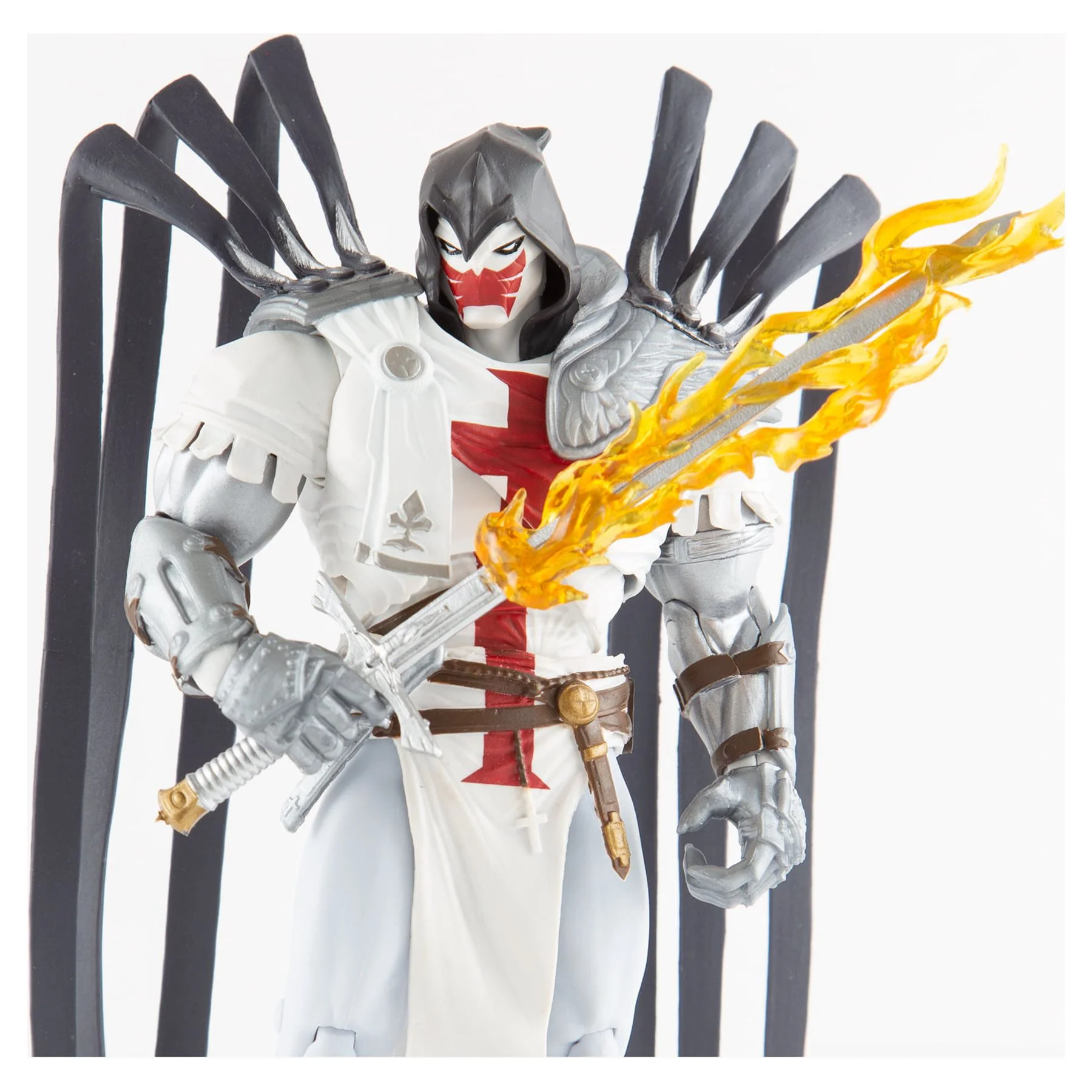 • Los accesorios de Azrael incluyen espada con llamas extraíbles y base