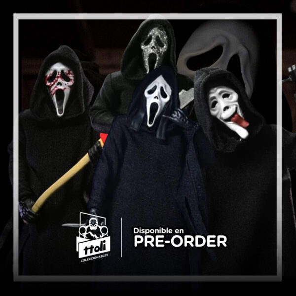Con múltiples diseños de máscara nuevos y piezas intercambiables, puedes personalizar a tu asesino y crear una exhibición de Ghost Face verdaderamente única. Esta figura de acción también está diseñada para combinarse a la perfección con la figura Ultimate Ghost Face Inferno (se vende por separado) . Con una escala de 18 cm, Ghost Face presenta una túnica de tela actualizada (vista por primera vez en la exclusiva de la convención Ghost Face Takes Manhattan) y cinco máscaras intercambiables: clásica, sangrienta, verde, “¿Qué pasa?” y una nueva máscara brillante.