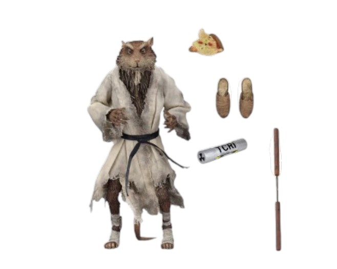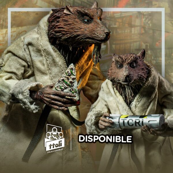 - Accesorios incluidos: Nunchakus, rebanada de pizza y recipiente de mutágeno.
